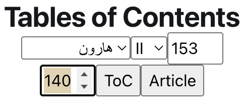 To look up an article by edition, select the edition and volume, and type the page number; then tabbing will populate the next box with the article number: